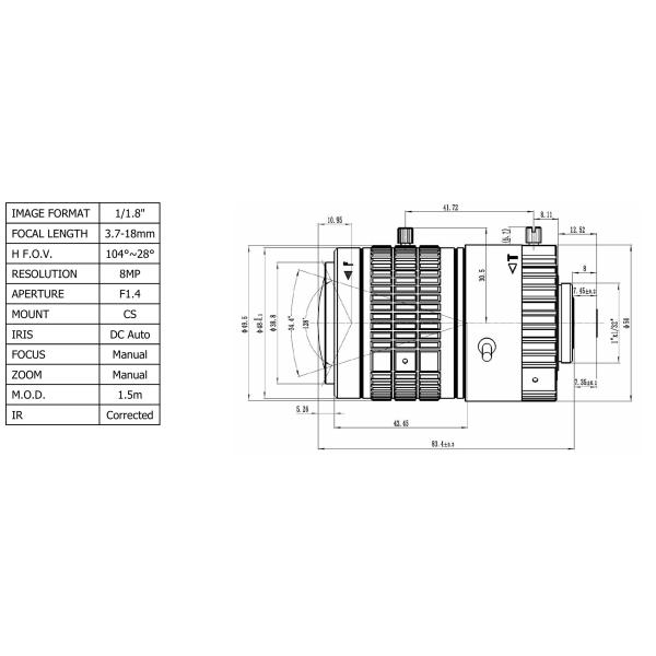 10-50mm 1/1.8" 8k, F1.4 P iris lens CS mount Lenses,CCTV Lens, well match 8MP IP Box camera Images |